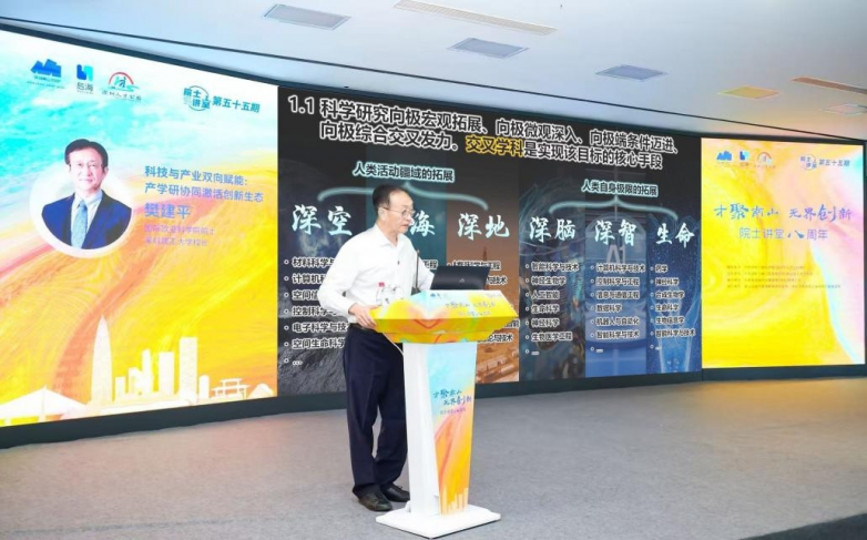 10月25日,“才聚南山 无界创新”院士讲堂八周年活动在此拉开帷幕。国际欧亚科学院院士、深圳理工大学校长樊建平开讲,台下座无虚席。